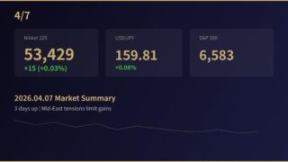 株 【4月7日】日経平均は15円上昇!中東情勢にらみ3日続伸も伸び悩む