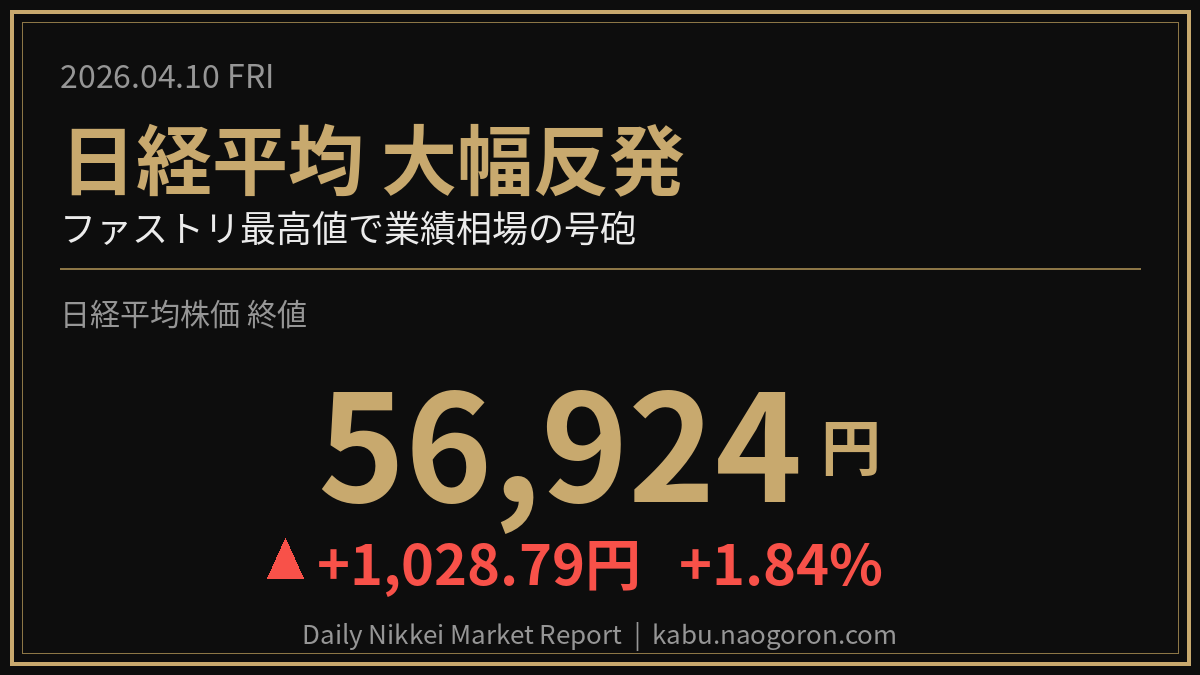 【4月10日】日経平均は1,028円上昇!ファストリ最高値で業績相場の号砲