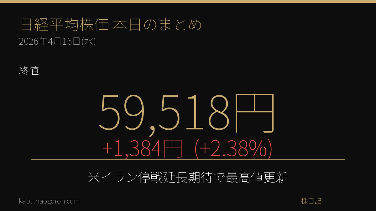 日経平均が史上最高値更新!59,518円で引け — 米イラン停戦延長期待がリスクオンを加速